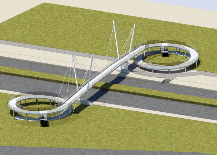 Πρόκειται για το ύψος της παιδικής χαράς στο κέντρο Notos. Η γέφυρα θα έχει άνοιγμα μήκους 38 μέτρων, με το οποίο γεφυρώνεται το οδόστρωμα της λεωφόρου και τα εκατέρωθεν πεζοδρόμια. Ο συνολικός λειτουργικός σχεδιασμός του έργου, έγινε κατά τρόπο που να εξυπηρετεί άτομα με αναπηρίες. Η βασική ιδέα σχεδιασμού της γέφυρας –της οποίας ο συνολικός φορέας προβλέπεται μεταλλικός– αναφέρεται σε καλωδιακή γέφυρα της οποίας τα καλώδια ανάρτησης μπορεί να θεωρηθεί ότι αισθητικά παραπέμπουν σε σχοινιά ιστιοφόρων που συχνά πλέουν στην παρακείμενη ακτή.